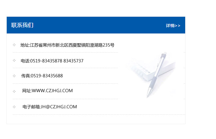 傳真:0519-83435688    郵編:213135    網址:WWW.czjhgj_com.hongruwenhua.com    電子郵箱:JH@czjhgj_com.hongruwenhua.com